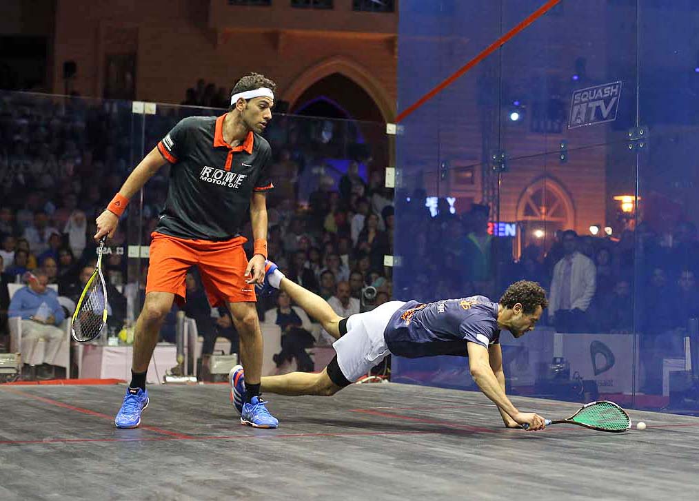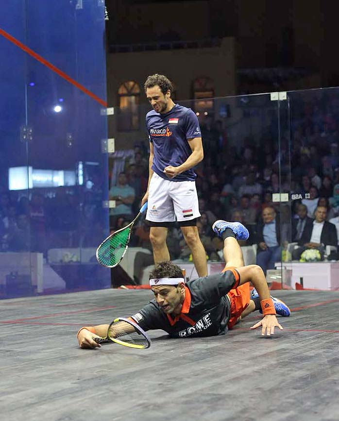 in the 2015 El Gouna International PSA World Series event.The 27-year-old hasn't competed on tour since he won the 2014 World Championship in December, where he beat Elshorbagy in a similarly gripping 3-2, and he inflicted heart-break on the 24-year-old World No.1 once again in front of a raucous crowd on Egypt's Red Coast. "It's such a privilege for me to have played and won in front of this great crowd in this amazing venue here in Egypt," said Ashour. "It's something I'm really proud of." There