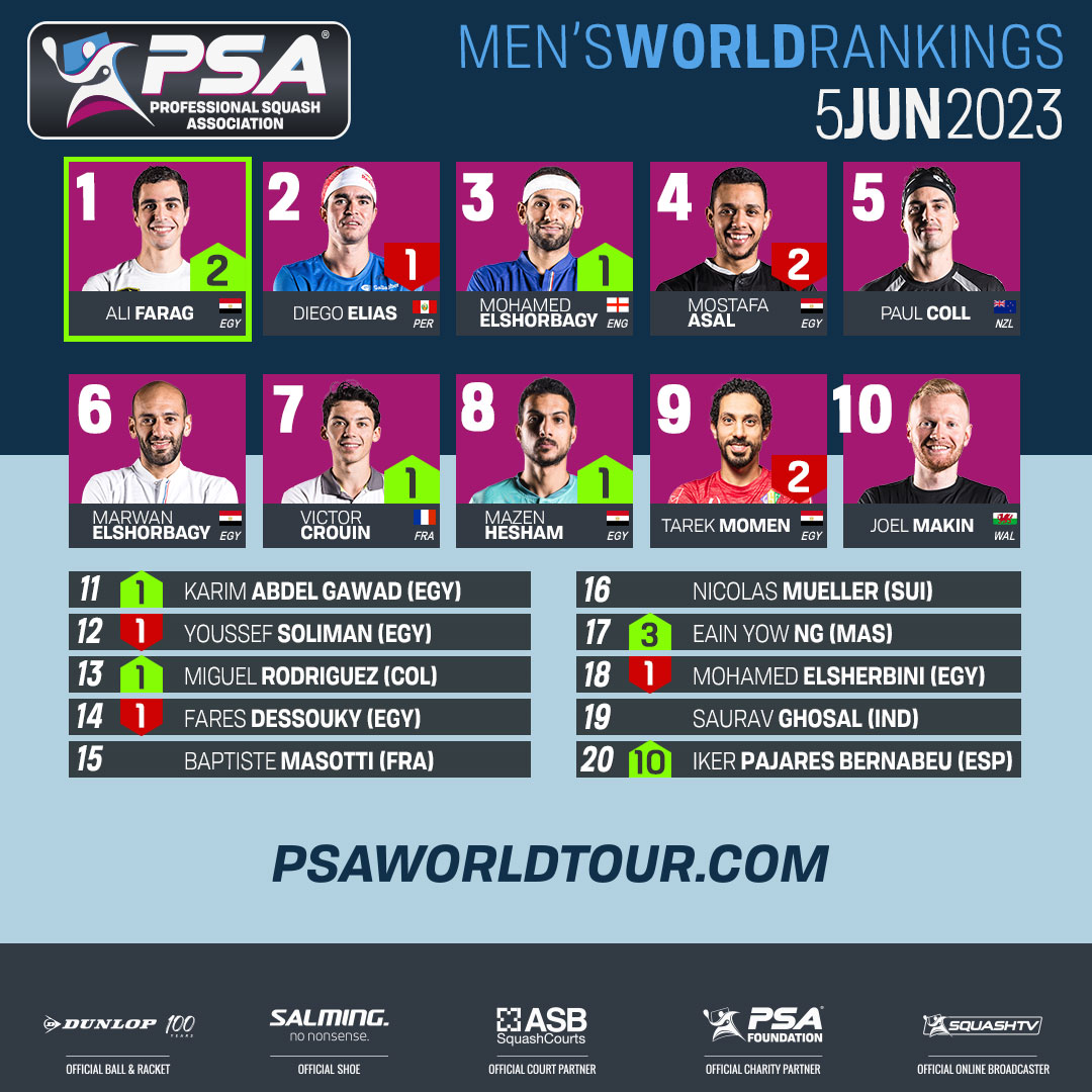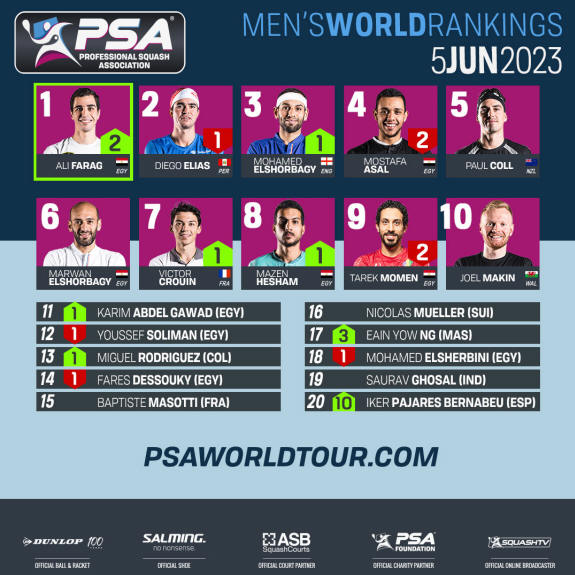PSA Men’s World Rankings Top 20 – Monday June 5, 2023