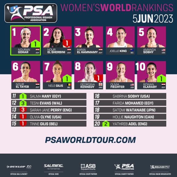 PSA Women’s World Rankings Top 20 – Monday June 5, 2023