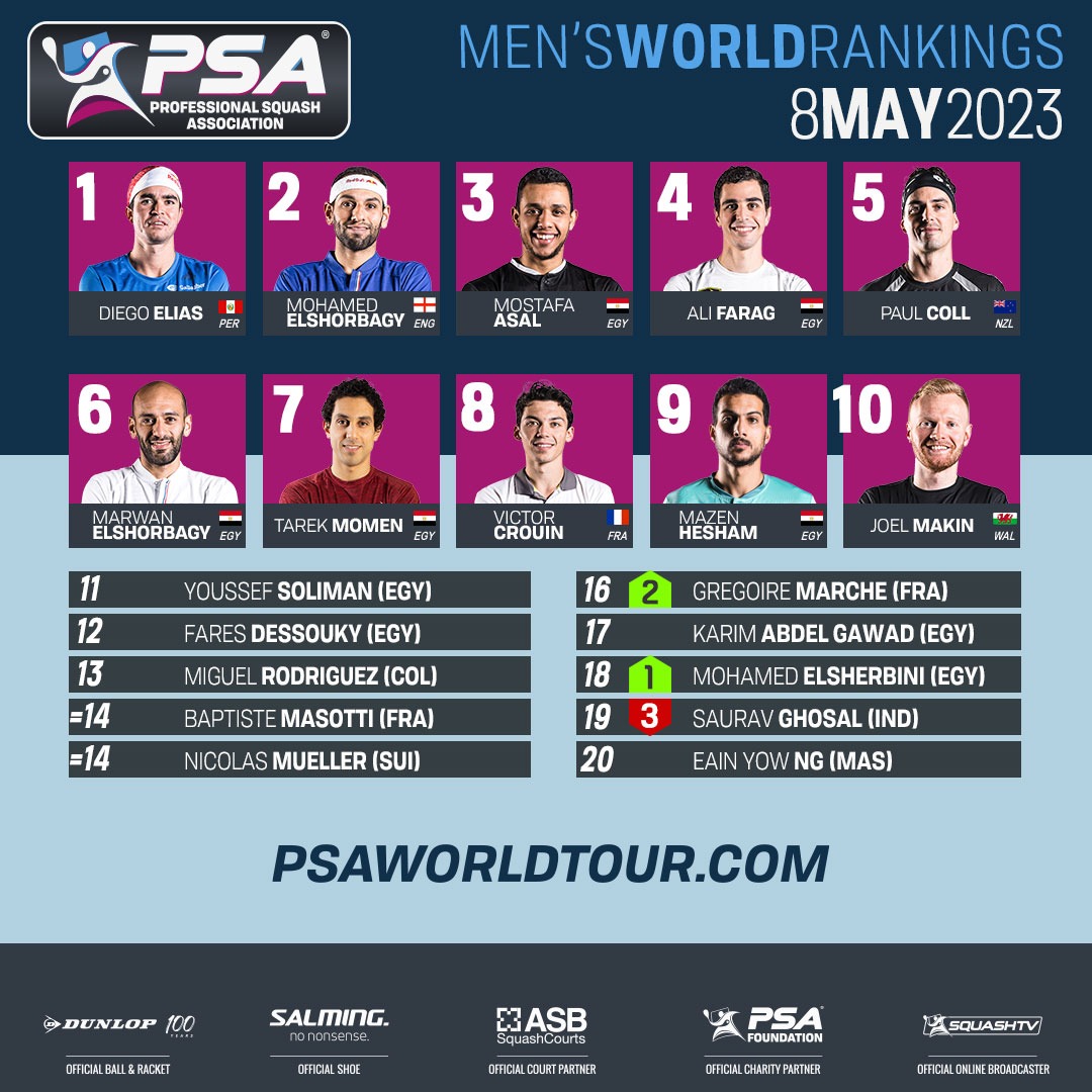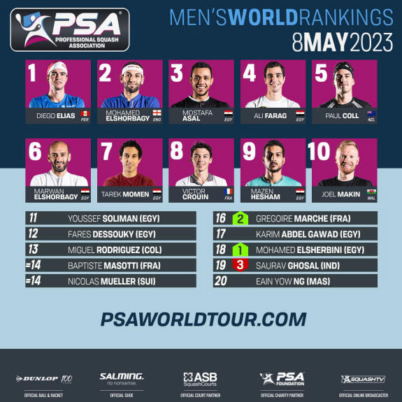 PSA Men’s World Rankings Top 20 – Monday May 08, 2023