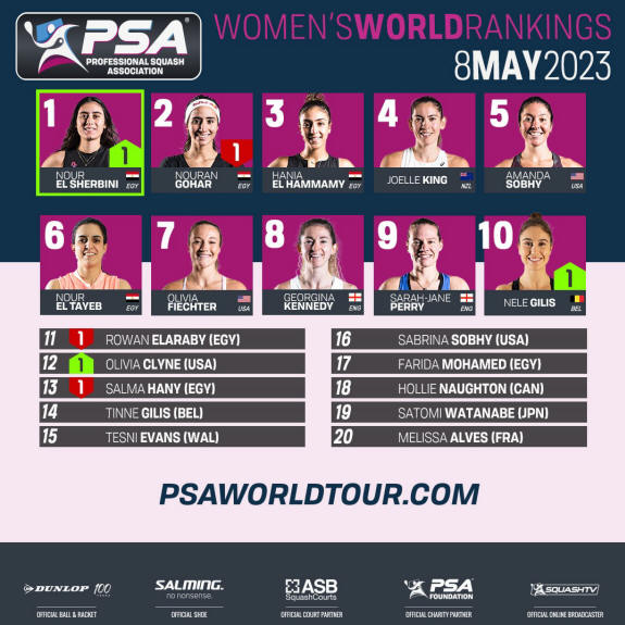 PSA Women’s World Rankings Top 20 – Monday May 08, 2023