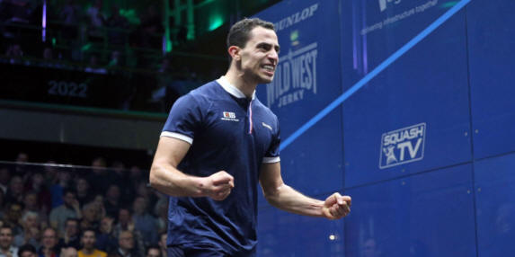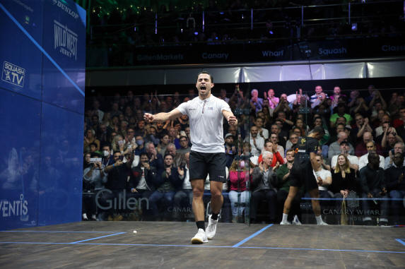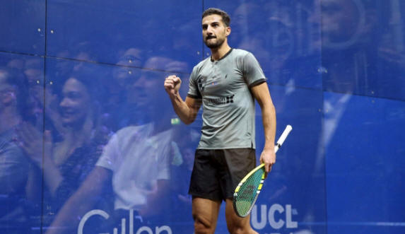 wins over Egypt’s Mazen Hesham and Peru’s Diego Elias at London’s East