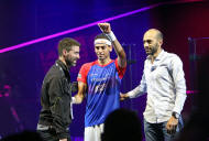 take on Egyptian World No.5 Ali Farag - a late replacement for the