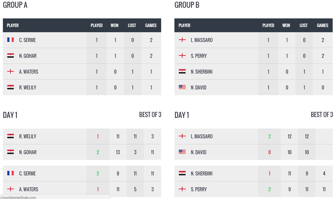 Women's PSA Road To Dubai Standings compete in two groups of four in