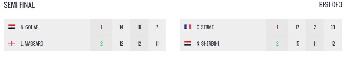 Elsewhere, Massaro and El Sherbini set up a repeat of the 2015 PSA