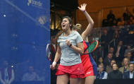 Champion Nicol David, while 15-year-old tournament wildcard Marina