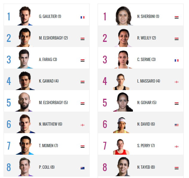Meanwhile, World No.1 Gregory Gaultier heads up the men’s