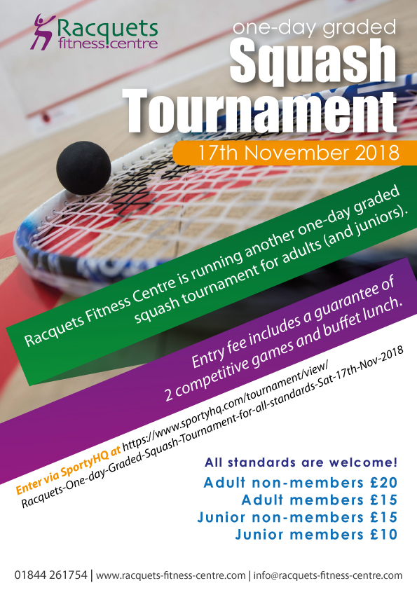 17/11/2018 Racquets Fitness Centre Graded News click logo to go to Homepage One-day graded tournament November 17th Click poster to Enter