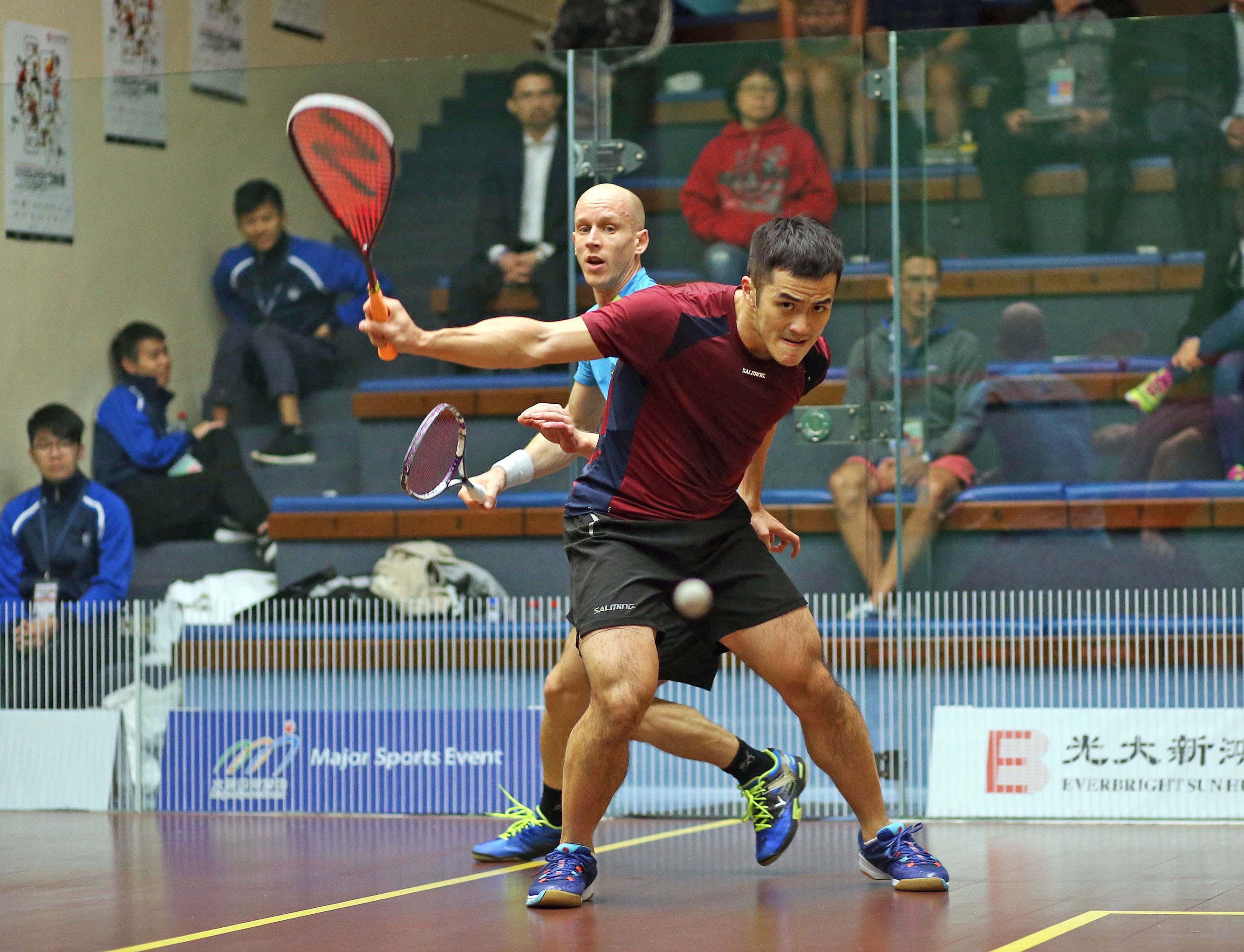 home support at the Everbright Sun Hung Kai Hong Kong Squash Open later