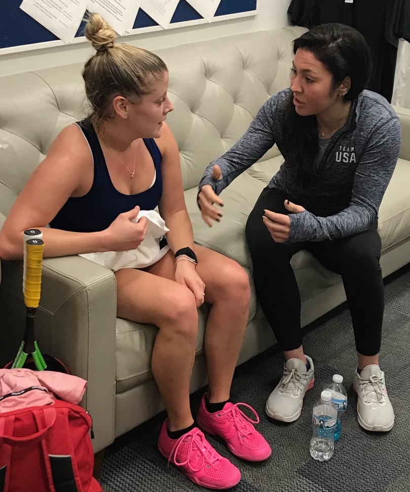 as Nikki did exactly what coach for the match, Amanda Sobhy (right),