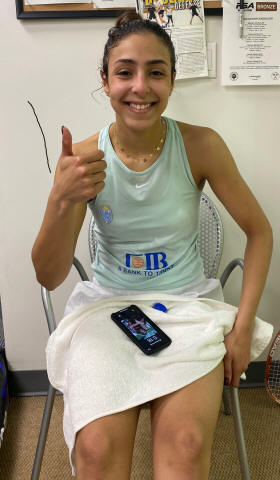 Sobhy taking on Belgian Champion Nele Gilis. Play will be from 3-6pm and
