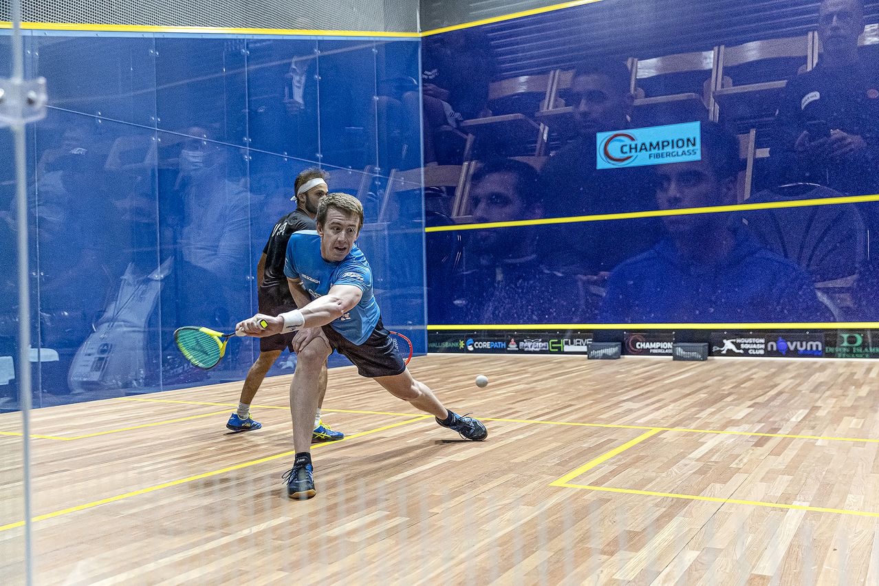 out in three to book his place in the last eight at Houston Squash Club.