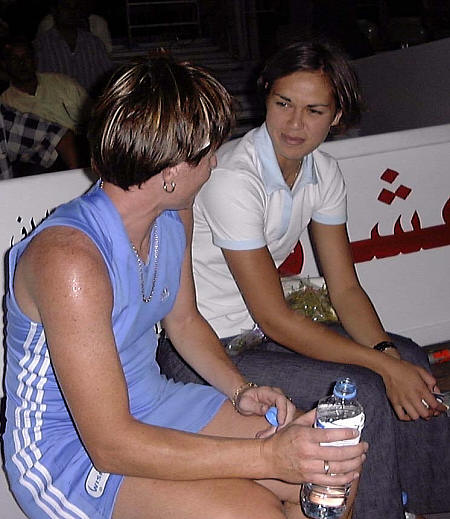 the position animatedly with Egyptian player Maha Zein.