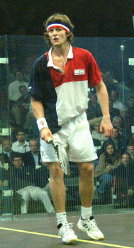 | Day Two Gentlemen of the Game David Palmer, after his victory over Anthony Ricketts, said "that was a really hard match. It had a lot extra riding on it too, since Anthony is a fellow Aussie and is certainly one of the in-form players at the moment. His world #12 ranking is an understatement on current form, so I'm pleased to have won." Certainly from where I stand it was the match of the tournament so far, with not always classical squash, but fierce battling throughout. Ong Beng Hee, not long out of his apprentiship, proved too experienced for another star of the future, Mohammed Abbas of Egypt. If he continues like this I predict he will take some beating in two years' time. Meanwhile, young Beng Hee continued to win over the 'floating voters', impressing as always with his manner and manners on and off court. He's obviously learned a lot from his mentor, top seed Peter Nicol, who eased his way past Rodney Durbach in tonight's last match. Golf Partners Required Kneipp wants to move up the world order, but Thierry Lincou is really starting to show that he belongs in the world top five. Three hard games, but the Frenchman has beaten Egypt's Omar Elborolossy in the first round, although after the match he received physio treatment and a huge icepack on a sore knee. The smile on his face says it all though - he's through. Heath the master of tact I went to check the progress of the matches to find Martin Heath two nil up and seemingly in cruise control against Nick Taylor. Some time later messenger was sent to me saying "I think we have a shock". As I walked to courtside Martin exploded past me, with the look of a man who has just lost 3-2, hotly pursued by a TV crew desperate for an interview. "What happened?", was the first question, to which Martin replied with wonderful restraint, "I lost". Not to be put off, the follow-up question was "Why?". Showing his Scots education had not been wasted, Martin again played it with a straight bat - "he played better than me!". I feel I must brush up on my interviewing technique! Looking at the marking sheet for the match, I note that the local marker, who has been performing this role for us for the last seven years, noted: "Nick Taylor - short hair." His other aide-memoire was: "Martin Heath - Scot". I look forward to seeing how he describes John White ... |
