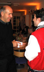 BLESS THE SPONSORS… Let’s face it… No sponsors, no money; no money, no squash… So, it’s always a pleasure to meet the people who make evenings like these possible. And I was told, but I was told so many things last night my small brain had problems to store all that information in English, that some of the sponsors from both teams were down to enjoy the show. In Nottingham's corner, we had the exquisite Merchants Restaurant, Pierre Victoire & Lace Market Hotel Marketing Manager, Amanda Marshall, and their director, Robert Beacham (below), a keen squash player, who was actually talking with the players between the games.