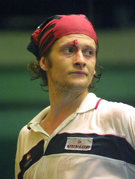 HONG KONG SHOWDOWN After a titanic 108-minute battle it was Nicol who emerged the winner, to claim his third Cathay Pacific title and edge ahead 16-15 in their personal duel. Power started the stronger, racing to a 7-2 lead in the first game. Nicol clawed his way back to 7-8, at which point Power needed an injury 'time-out', feeling his back. The referee allowed the delay, declaring it to be a new injury, presumably as opposed to the head wound he received in the semi-finals. Nicol was unconvinced. "A new injury? He's been getting that for five years," said Nicol, much to the amusement of the capacity crowd. Once back on court, Power looked to be in some distress, holding his back and conducting his usual discussions with the referee. "Power's back looks really painful," said observers at courtside. The Canadian managed to hold it together to reach 13-10, but Nicol took the last five points to clinch the first. "At the start I was getting to the ball much earlier but after the injury I began to slow and allowed him to dominate," a sorry Power told the South China Morning Post.. Power, who yesterday suffered a racket blow to the head (see photo), was attended to by the doctor in the game interval, with ice packs applied to his back, but looked at times to be in sufficient pain as to make his continued participation in the match doubtful. He came out for the second, but was struggling with his movement as Nicol quickly established a 2-0 lead, with Power adopting an attacking philosophy that didn't pay off. The third saw Power moving more easily, and they traded points until Power reached game ball at 14-12, then Nicol levelled at 14-all. It's a brave man who calls 'set one' at 2-0 down, but that's what Power did, giving match-ball to Nicol. After several lets Power finally clinched it, and was smiling once again rather than grimacing. "It was match ball and I was definitely surprised to see him ask for set-one. It isn't the norm, but then it is Jonathon," said Nicol. "I always call set-one, said Power. But the miracle comeback was not to be, as Nicol took an early lead in the fourth, 9-2, and this time there was no way back for Power. Power revealed afterwards that his back was suffering from an old injury that had flared up again. "I got spasms in my back and that was the beginning of the end. I have had this problem for a long time. It is too bad it happened today for I was playing well and dominating. But the injury affected my movement," Power, who had been hoping to remain undefeated since wearing his new line of sports shoes, told the SCMP. "I thought I had him. I thought he was tired and that I would win. The spasms had gone away by then and I was starting to feel good. But then I came back and played such a bad fourth game and gave him a 9-2 lead. He was tough mentally today," Power said. Power was philosophical in defeat - his first wearing his new shoes. "I'm tired after a hard week," said the Canadian. "It's been a hard draw for me here, no easy matches. But I've got 10 days rest now before the US Open in Boston, so I'm hoping to be back on top form then." Nicol was clearly pleased with his third Hong Kong title. "I knew that leading 2-0, it would be very difficult for him to come back. It would have been nice to win in three, but I knew after the third that he didn't have much left in the tank for the fourth," said Nicol. "The biggest thing for me was not to lose today and go 5-0 down to him this year. I knew I was moving well enough to be able to soak up anything he threw at me in the match. I'm firmly back on track now." Nicol and Power moved further ahead of the field in the