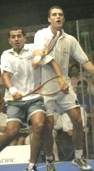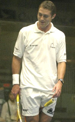 Fri 3rd: Quarter-Finals: [8] Nick Matthew (ENG) bt [16] Adrian Grant (ENG) 7/11, 11/5, 11.8, 11/10 (3-1) (56m) [4] David Palmer (AUS) bt [6] Jonathon Power (CAN) 11/9, 8/11, 11/5, 11/10 (5-3) (55m) [3] Thierry Lincou (Fra) bt [7] Amr Shabana (Egy) 11/5, 6/11, 11/1, 11/6 (33m) [2] Lee Beachill (Eng) bt [5] John White (Sco) 9/11, 8/11, 11/10 (2-0), 11/10 (3-1), 11-5 (67m) |