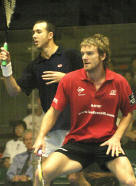 Thu 2nd: Round Two, the Last 16: bt [1] Peter Nicol (ENG) 9/11, 11/5, 11/10 (2-0), 8/11, 11/6 (63m) [8] Nick Matthew (ENG) bt [10] Gregory Gaultier (FRA) 11/7, 6/11, 8/11, 11/3, 11/7 (83m) [4] David Palmer (AUS) bt [Q] Hisham Ashour (EGY) 10/11 (0-2), 11/4, 11/5, 11/9 (30m) [6] Jonathon Power (CAN) bt [11] Joseph Kneipp (AUS) 11/2, 11/9, 11/10 (8-6) 55m) [7] Amr Shabana (Egy) bt [13] James Willstrop 5/11, 4/11, 11/9, 11/6, 11/8 (49m) [3] Thierry Lincou (Fra) bt Paul Price (Aus) 11/9, 11/7, 11/6 (32m) [5] John White (Sco) bt Ong Beng Hee (Mas) 11/4, 11/5, 10/11 (1-3), 11/8 (49m) [2] Lee Beachill (Eng) bt [9] Karim Darwish (Egy) 11/9, 10/11 (0-2), 11/7, 11/6 (43m) |