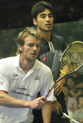 Sat 4th Semi-Finals: [8] Nick Matthew (ENG) bt [4] David Palmer (AUS) 11/6, 11/10 (3-1), 9/11, 11/9 (59m) [3] Thierry Lincou (Fra) bt [2] Lee Beachill (Eng) 11/10 (3-1), 11/6, 3/11, 11/6 (48m) |