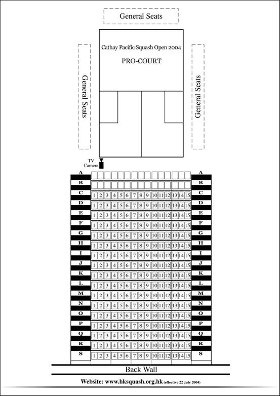 Ticket sales from 9th August 2004 , Monday to Friday 11.30am – 6.30pm at Hong Kong Squash Office (Admiralty). Enquiries Hotline: 2523 2225 BOOKING FORM SEATING PLAN