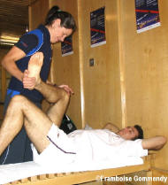 06-Aug-04: Kaleidoscope guest David Rawlings will be on site at the Crucible for the Mamut English Open, offering free sports massages to the players in the main draw as they strive to win the first title of the new season. Here he explains the benefits of Sports Massages for squash players ... The Demands Of Squash & The Role Of Sports Massage Many of us would naturally think of a marathon runner as being extremely fit. But their defining quality, endurance, is just one aspect of an individual’s overall fitness level. In Squash too skill and tactics must exist alongside a high level of fitness, which includes many elements. The demands of a squash game are so that the intensity and duration of a match are never the same. The energy for a game will by and large be made aerobically (with oxygen), but some rallies will require supramaximal bursts which are anaerobic and will cause a temporary oxygen debt. This eventually results in fatigue, down to the build up of lactic acid in the muscles. Strength and power, normally associated with bodybuilders and weightlifters, are equally important on the squash court. The leg and shoulder muscles are involved in lots of concentric and eccentric contractions (acceleration and deceleration of movement). The back and abdominal muscles must be sufficiently conditioned to create and control the dynamic rotatory movements involved in the game. Explosive power is essential for getting to shots and recovering the T which deprive your opponent of time and apply the necessary pressure needed to win. Speed around the court relies on developing the correct neuro-muscular patterns so that the feet are able to move quickly and effectively. Potentially the least considered, yet most vital, elements are mobility and flexibility. As well as for prevention of injury and recovery after matches this element if developed sufficiently will improve efficiency of movement and overall performance on court. Hopefully the above illustrates that, as with any sport played at a high level, squash places huge demands on the athlete both physically and mentally. As we have seen from the English national Football and Rugby teams recently, sports massage is quickly becoming an essential part of any athletes training programme. The management, manipulation and rehabilitation of the soft tissues of the body are where the sports massage practitioner has an important role to play. It is envisaged that both now and increasingly in the future massage practitioners will work closely alongside Doctors and Physiotherapists. By regularly moving and manipulating the soft tissues (muscles, tendons, nerves, fascia etc.) we may improve circulation, reduce adhesions, re-align scar tissue and potentially make the tissues function with more efficiency overall. However, sports massage is still open to criticism due to the lack of solid research, and rightly so. If the discipline is to sit alongside trusted medical practices then the evidence base must increase. Thankfully the work of the Sports Massage Association and others is continually improving its credibility. The anecdotal evidence is abundant and its use by top athletes suggests that it definitely has a role to play. Sports massage will be available to the players at the English Open with the clear aims of improving recovery from match play and preparing the players for optimal performance. Dave Rawlings |
