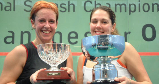 | Women’s final: [1] Cassie Jackman (Norfolk) bt [2] Linda Charman (Sussex) 9-3, 9-1, 9-5 (41m) Jackman makes History Norfolk’s Cassie Jackman wrote herself into the squash history books today at the National Squash Centre in Sportcity, Manchester, when she beat England team-mate Linda Charman in final of the British National Squash Championships to claim the title for a record sixth time. Jackman, who only returned to the international circuit just a year ago after career-threatening back surgery for the second time in her life, was in blistering form as she overcame her close friend 9-3 9-1 9-5 in 41 minutes. Only in the third game did Jackman’s remarkable eight-year unbeaten record against Charman look threatened when the 32-year-old from Eastbourne won five points in a row from 0-6 down. “She did to me what I’ve been doing to others all week,” said Charman afterwards. “Her length was so good she rarely let me into the game. I’ve been feeling so good all week, I was really hoping this could be my year, but Cassie was just too good,” added the England No2, now a runner-up in the event on four occasions. Jackman was in a jubilant mood after her historic victory: “I’m never set any records before so it’s great to get into the record books with this one. Now it’s there for someone else to beat,” Cassie told the packed crowd surrounding the all-glass court on which she won two medals in the 2002 Commonwealth Games. “I was pleased with the way I played, and with my movement,” added the 31-year-old from Norwich who reclaimed the world No1 ranking this month after winning five titles on the WISPA World Tour last year, and celebrating her 50th appearance in an international final. “Winning this title last year gave me a great start to the year – then getting back to the top of the world rankings, and being announced onto the court as ‘world No1’, gives you a real buzz. “I saw Linda’s match last night, and I knew I had to play well to beat her – and I did. I was concentrating on every point. The National Championships is a great event – all the players love to play here – and I am absolutely delighted to win this sixth title.” Jackman and Charman have been staying together in Manchester with Emma Donaldson, a former Scottish international. Their perhaps less-than-conventional pre-final preparation included baby-sitting for their friend’s three children Georgie, Jessica and Charlie. Jackman plans to celebrate her historic achievement when she returns to Norwich on Monday, then heads to Doha for next week’s Qatar Airways Challenge. She can then look forward to her next major milestone, her wedding to fiancé Matt Thomas on 12th March. |