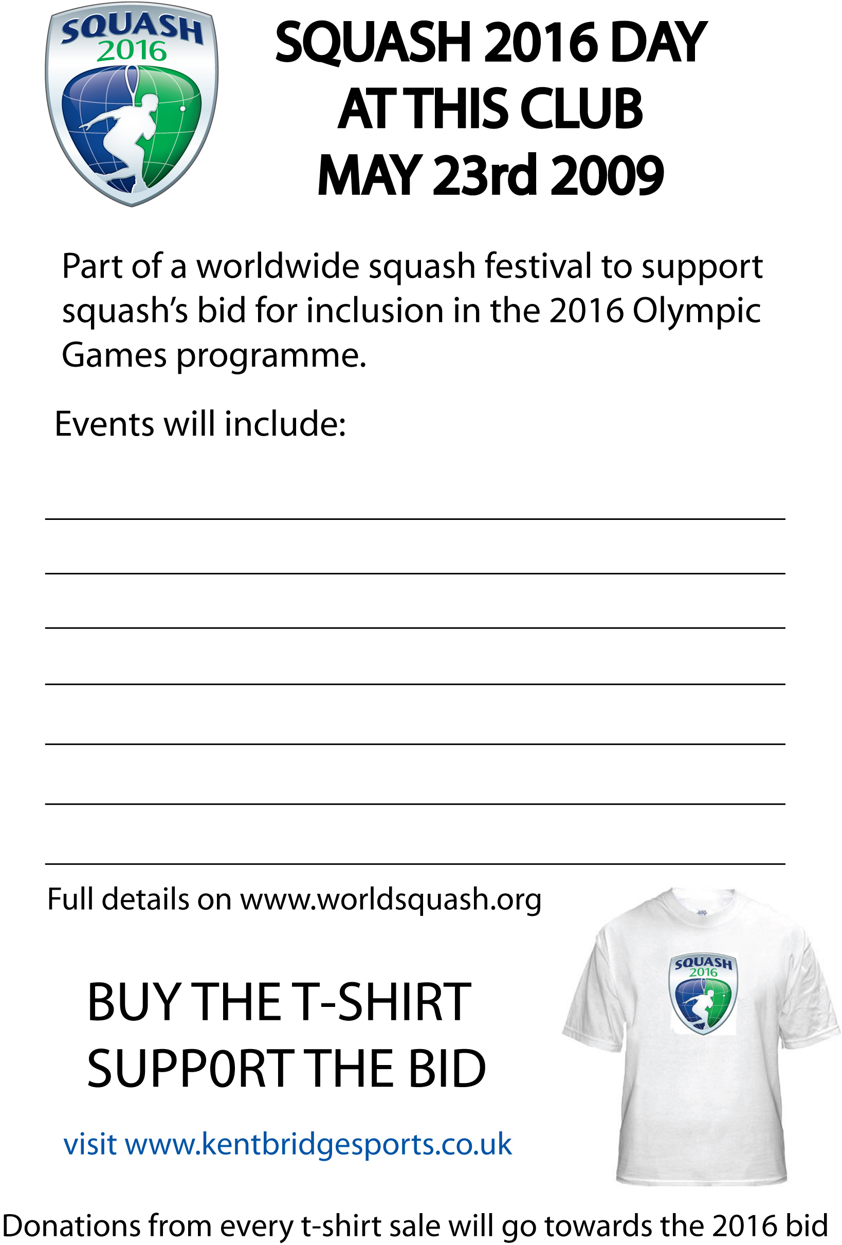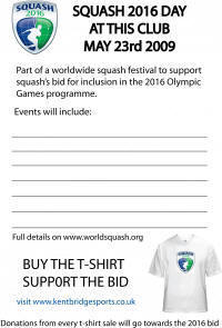 Squash 2016 Day is to raise funds for the Olympic Bid Fund. Donations can be