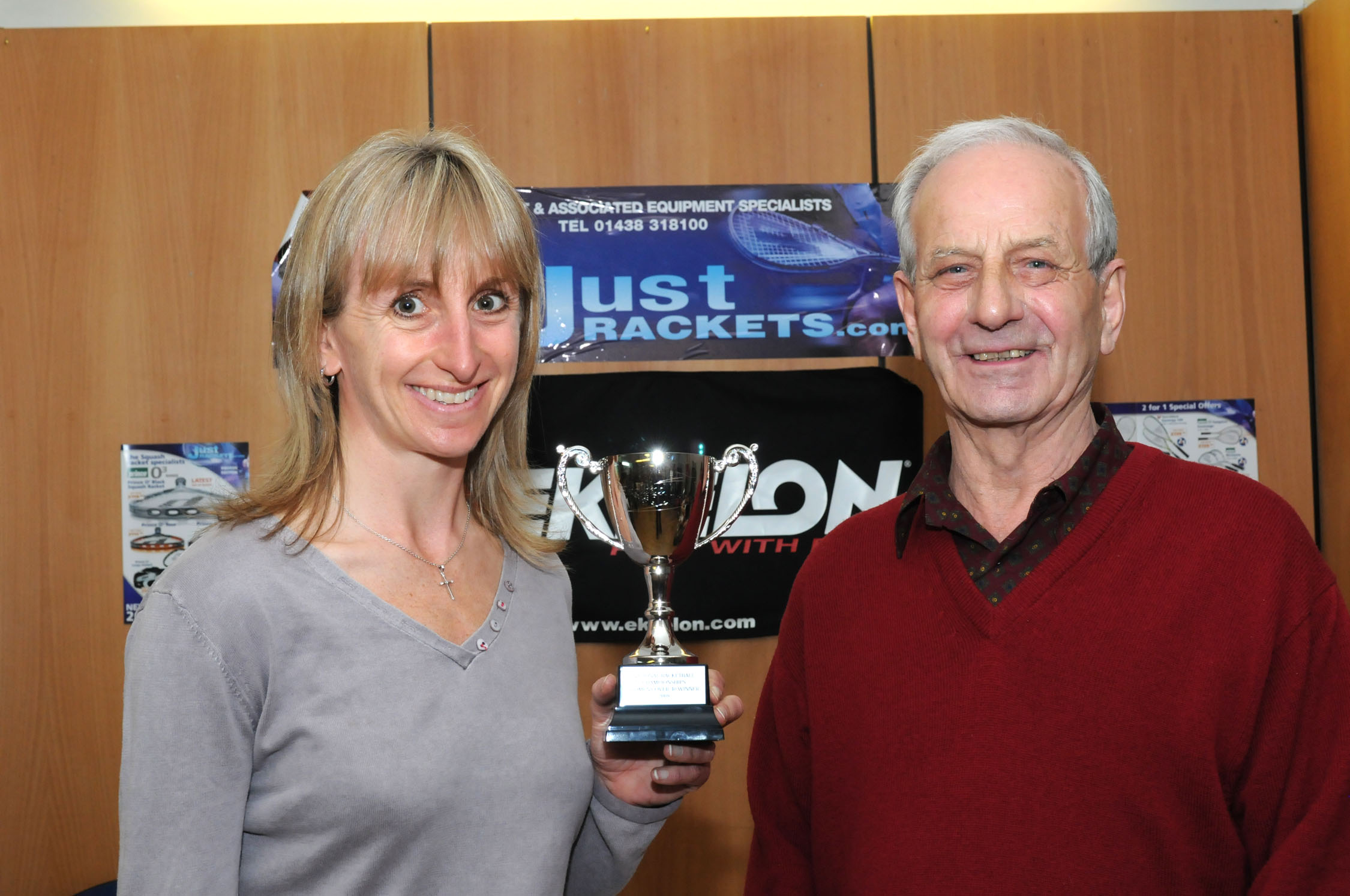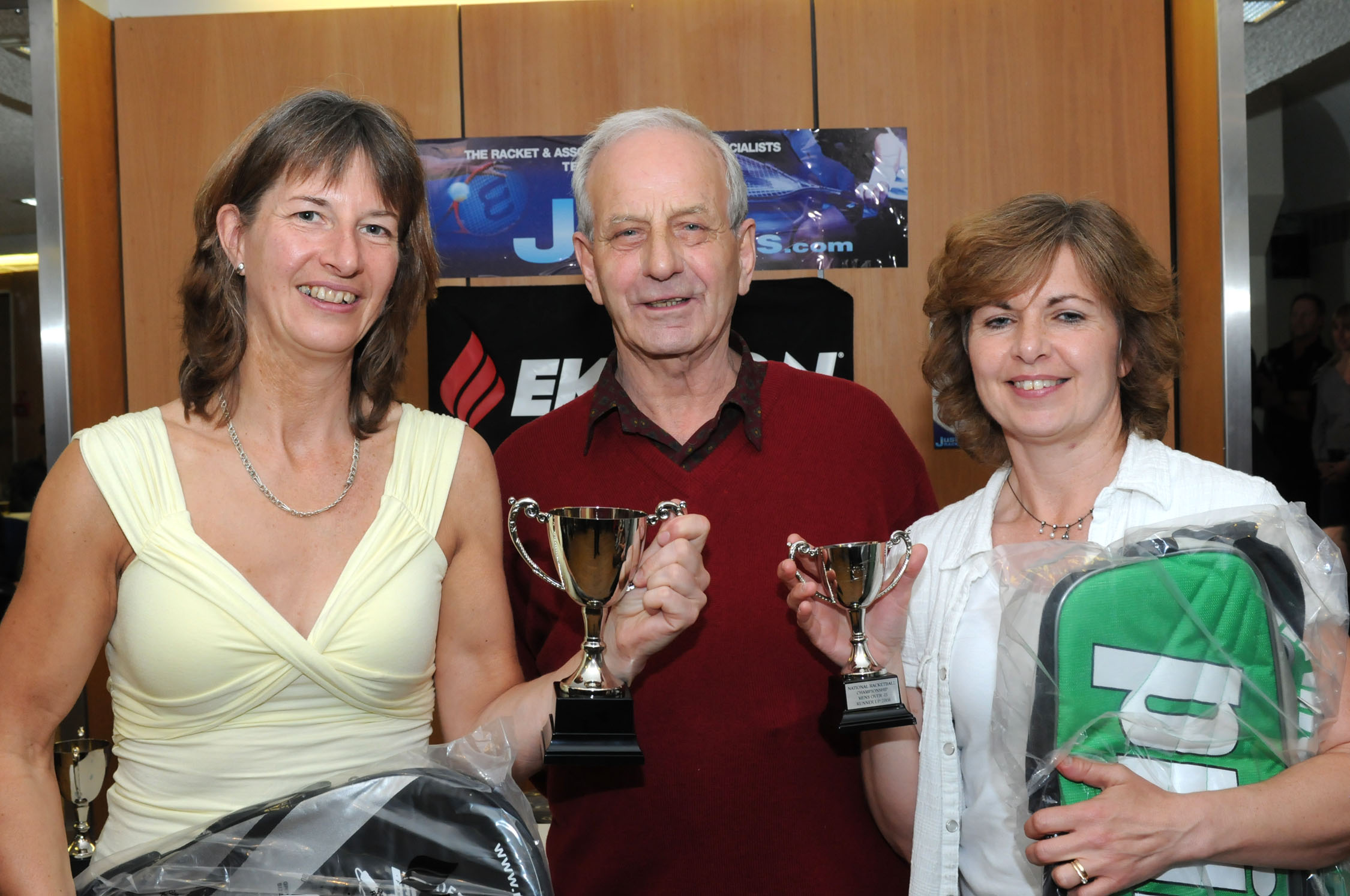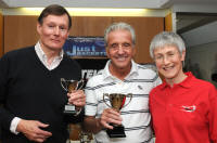 Men's o60 winner John Cockill, Zena Wooldridge, r.up Ian Garvey |