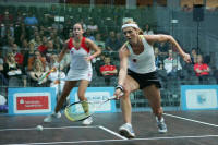 crushed Dutch opponent Orla Noom 11-0, 11-2, 11-2.