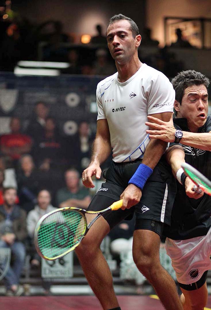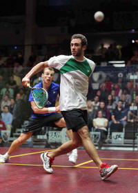 last year's finalists Amr Shabana and Nick Matthew,