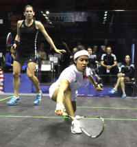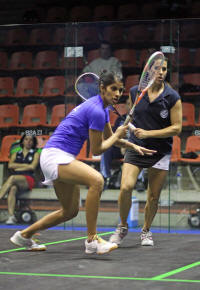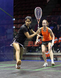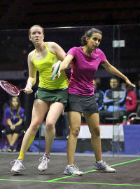 took on the reigning world number one Nicol David. Grinham was looking