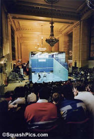 portable glass squash court, gallery seating for 550, and free viewing for