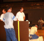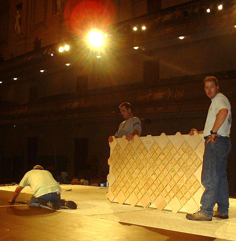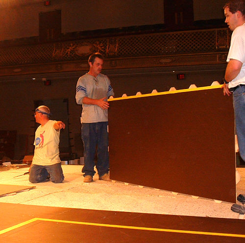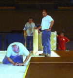 complete the court set-up and theater-style seating construction before