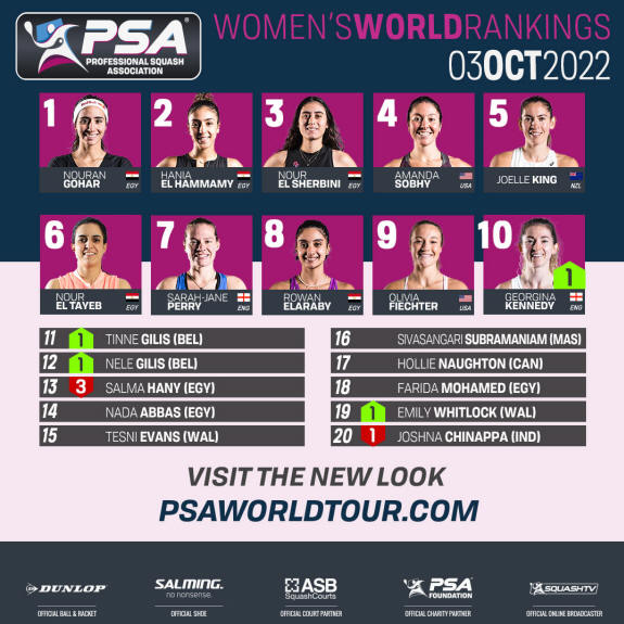 PSA Women’s World Rankings Top 20 – Monday October 3, 2022