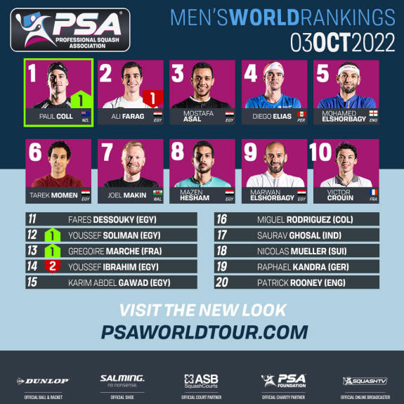 PSA Men’s World Rankings Top 20 – Monday October 3, 2022