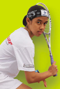 Nicol David, the world junior squash champion from Malaysia, heads