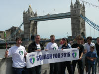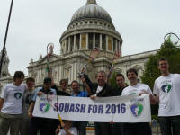 14/8/09 WSF President Responds to IOC Executive Board Announcement 14/8/09 Squash Olympic Dream Shattered 13/8/09 Squash United Behind 2016 Olympic Bid 4/7/09 Squash Pushes Forward in Africa With Attendance at ANOCA General Assembly 17/6/09 Squash in Race With Golf and Sevens for 2016 Olympics 16/6/09 13-year-old Ethiopian Squash Player Shines at IOC Presentation 13/6/09 'Roger Federer of Women's Squash' Inspires Swiss Youngsters in Zurich 11/6/09 Low-Cost High-Impact’ Squash Prepares for Presentation of a Lifetime 23/5/09 Squash Makes A Worldwide Racket For Olympic Bid 23/5/09 SQUASH 2016 DAY JUMPS INTO ACTION 20/5/09 SQUASH STARS BACK THE BID 20/5/09 Busy Time For Squash In Ecuador 20/5/09 Squash 2016 Day Unites Players 14/5/09 Announcement for Squash 2016 Day in Chicago in this MP3 (opens in media player) 14/5/09 Rock Star Jumps In To Launch Squash For 2016 Day 11/5/09 Australian Rugby Turn to Squash to Add Extra ‘Bounce’ to their Game 29/4/09 European Squash Juniors Back the Bid 20/4/09 ‘From the Squash Player magazine' Race for Olympic Finishing Line PDF File 26/3/09 Squash 2016 Bounces Into Sportaccord 24/3/09 Peter Nicol Outlines Dreams for Squash 2016 10/3/09 Squash 2016 Launches Olympic Bid Website 5/3/09 Squash 2016 Announces Ambassador Additions 3/3/09 Squashing All Over The World on 2016 Day