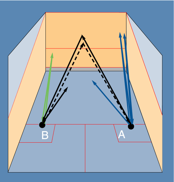 1. Players A & B volleying across to each other to practice their volleying;