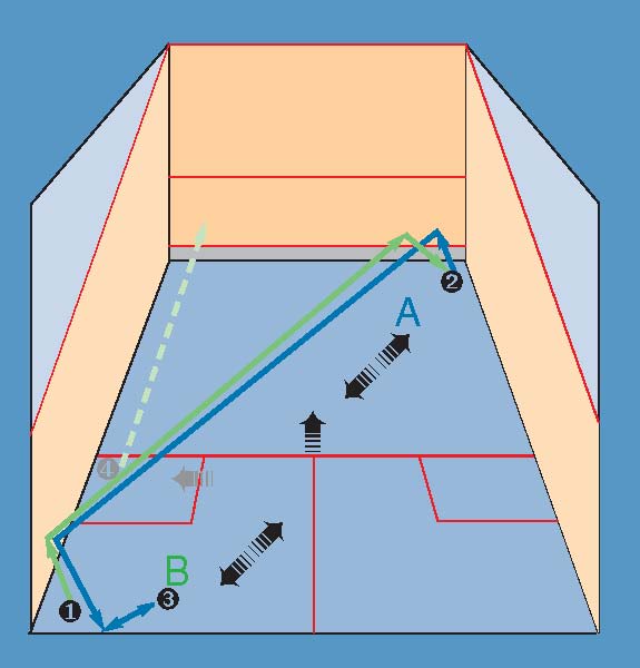 crosscourt, backhand crosscourt, forehand boast and backhand boast. A