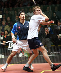 This was a rematch of the World Open of November 2004. There Thierry Lincou saved matchball to deprive Beachill of the world title. Here he saved them again in spectacular fashion in the fourth game, aggressively, on fire, while Beachill’s luck just ran out and he was spent in the fifth to let the Frenchman into the final 6-11, 11-9, 5-11, 16-14, 11-3 after 76 minutes.